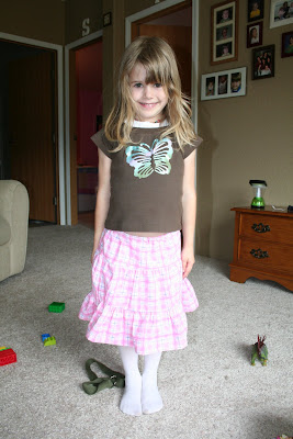 Well, here are the pictures of the skirt I sewed for Sierra. It took me a day to do it. It is the first thing I have ever sewed. She was very excited about it.