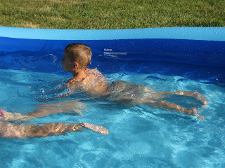 Our first day back was filled with a family dinner and playing in the pool. The kids spent several hours playing in GG and Papa's new pool. Zeke played in the baby pool too; he had a lot of fun in there. Here are some pictures from today.